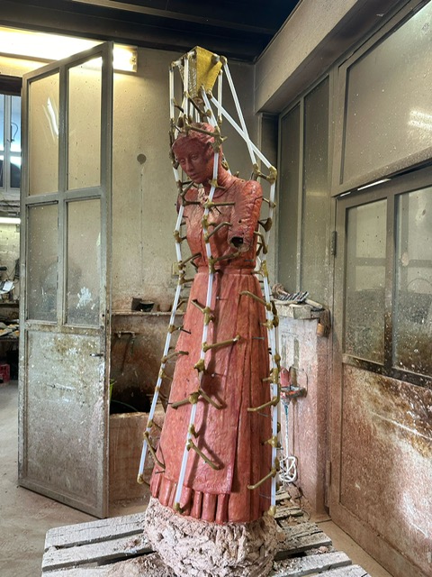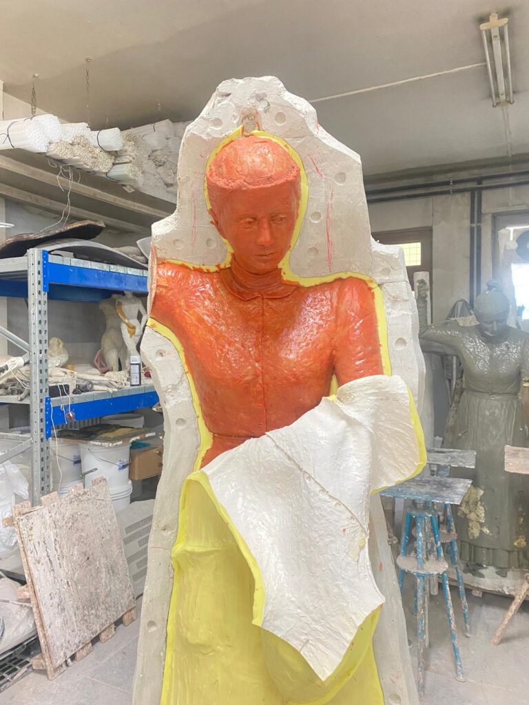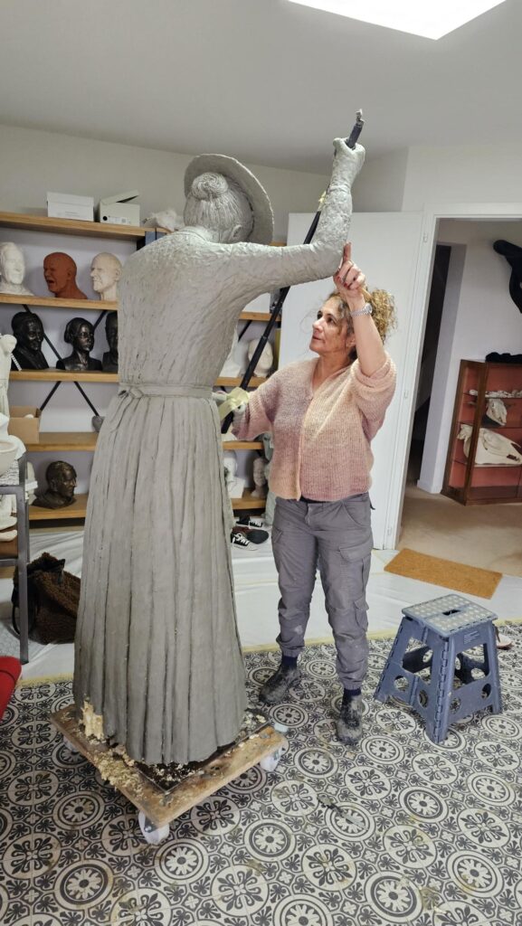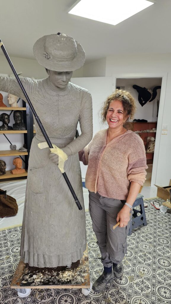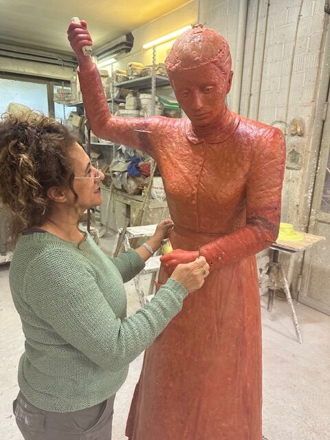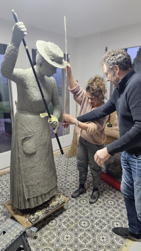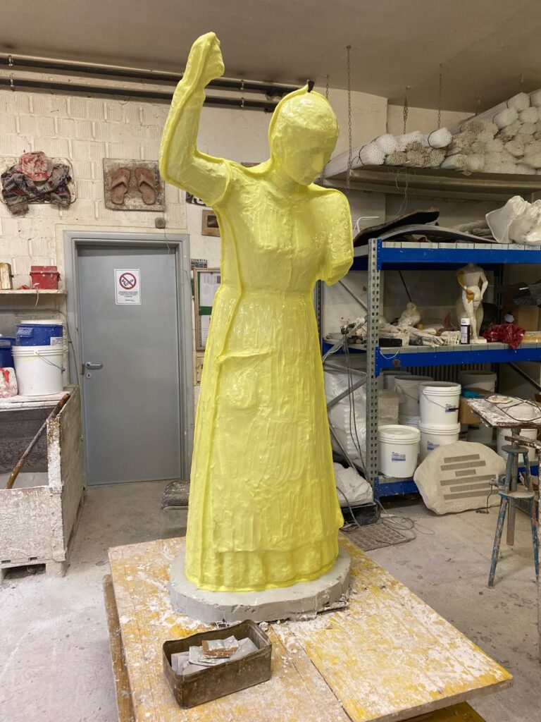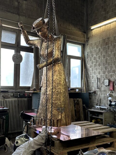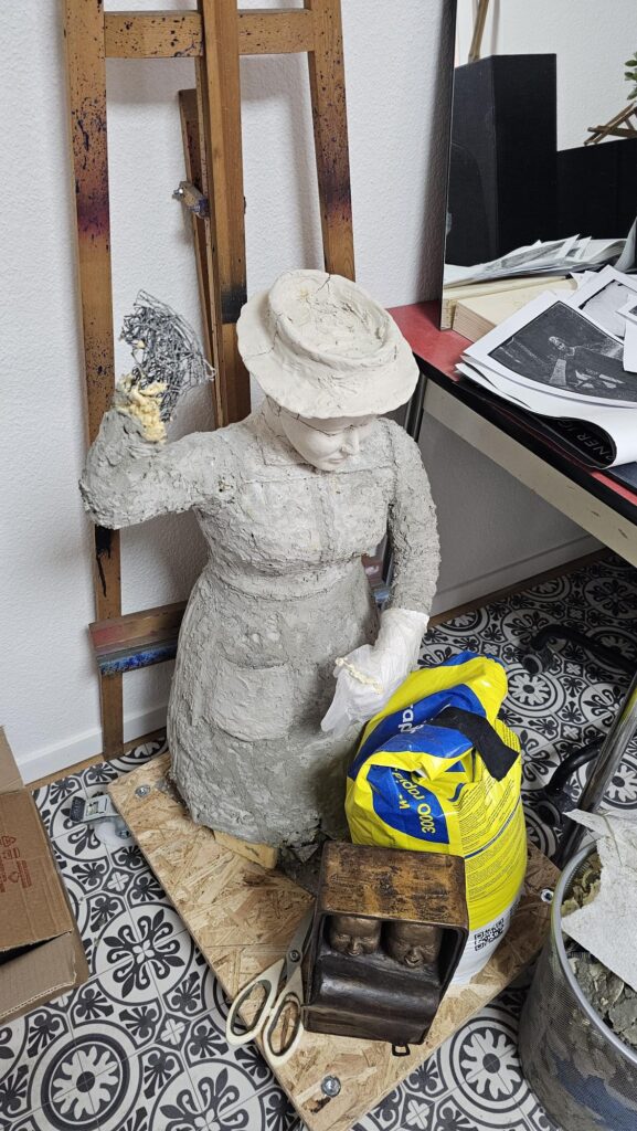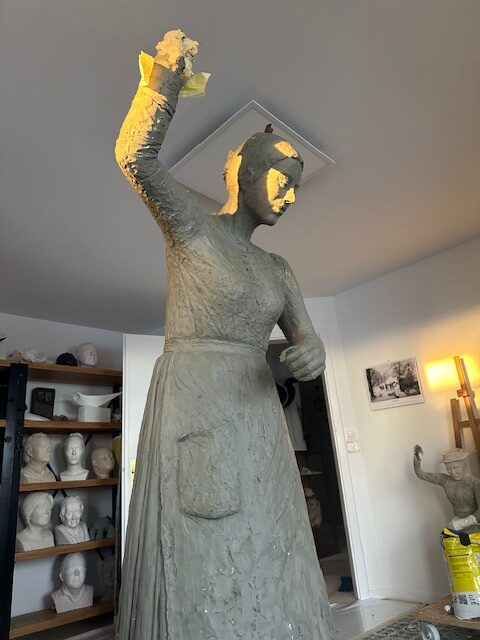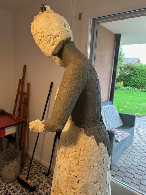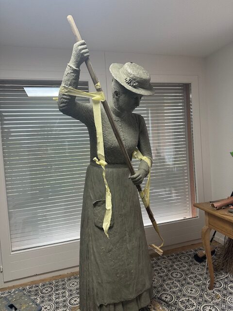 Die Lektüre der aufgearbeiteten Geschichte über das Landhaus und seine Bewohnerinnen und Bewohner inspirierte die Bronzekünstlerin Yael Wagner zur Erschaffung einer lebensgrossen Statue als Ehrerbietung und Denkmal für die Wischerinnen und arbeitenden Frauen. Von der Idee über den ersten Prototyp bis zur Enthüllung war es ein intensiver Schaffensprozess der Künstlerin, welcher sich über zwei Jahre erstreckte!